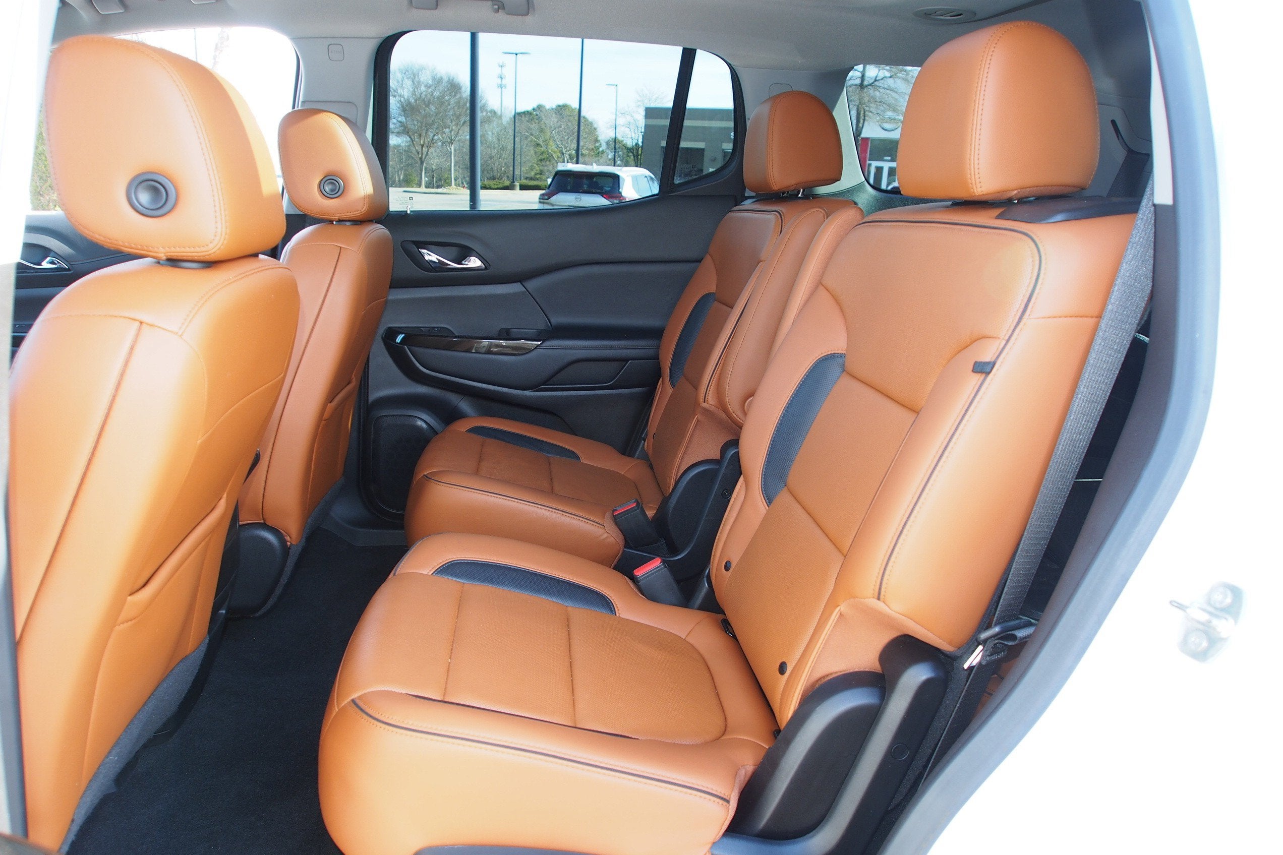 AWD, Jet Black/Kalahari Leather, 1st & 2nd Row All-Weather Floor Liner (LPO), 3.49 Final Drive Axle Ratio, 3rd Row All-Weather Floor Liner (LPO), 4-Way Manual Passenger Seat Adjuster, 4-Wheel Disc Brakes, 5-Passenger (2-3 Seating Configuration), 6 Speakers, 6-Passenger (2-2-2 Seating Configuration), 6-Speaker Audio System Feature, 8-Way Power Driver Seat Adjuster, 8-Way Power Passenger Seat Adjuster, ABS brakes, Air Conditioning, Alloy wheels, AM/FM radio: SiriusXM, Apple CarPlay/Android Auto, Auto High-beam Headlights, Auto-dimming Rear-View mirror, Automatic Emergency Braking, Automatic temperature control, Black Center Caps w/Red GMC Logo (LPO), Bose Premium 8-Speaker Audio System Feature, Brake assist, Bumpers: body-color, Compass, Delay-off headlights, Driver Alert Package II (BGP), Driver door bin, Driver vanity mirror, Dual front impact airbags, Dual front side impact airbags, Dual SkyScape 2-Panel Power Sunroof, Electronic Stability Control, Emergency communication system: OnStar and GMC connected services capable, Floor Liner Package (LPO), Following Distance Indicator, Forward Collision Alert, Four wheel independent suspension, Front & Rear Park Assist, Front anti-roll bar, Front Bucket Seats, Front Center Armrest, Front dual zone A/C, Front fog lights, Front License Plate Bracket, Front Pedestrian Braking, Front reading lights, Fully automatic headlights, Garage door transmitter, HD Radio, Heated door mirrors, Heated Driver & Front Passenger Seats, Heated front seats, Illuminated entry, Infotainment Package (DISC), Integrated Cargo Liner (LPO), IntelliBeam Automatic High-Beam Headlamps, Knee airbag, Lane Keep Assist w/Lane Departure Warning, Low tire pressure warning, Occupant sensing airbag, Outside temperature display, Overhead airbag, Overhead console, Panic alarm, Passenger door bin, Passenger vanity mirror, Power door mirrors, Power Driver Lumbar Control Seat Adjuster, Power driver seat, Power Liftgate, Power steering, Power windows, Preferred Equipment Group 4SB, Premium audio system: GMC Infotainment System, Premium Cloth Seat Trim, Radio data system, Radio: AM/FM 8" Diagonal Multi-Touch Nav (DISC), Radio: AM/FM 8" Diagonal Multi-Touch Navigation, Rear Air, Rear air conditioning, Rear anti-roll bar, Rear reading lights, Rear seat center armrest, Rear window defroster, Rear window wiper, Remote keyless entry, Roof rack: rails only, Safety Alert Seat, Security system, SiriusXM Radio, SiriusXM w/360L, Speed control, Speed-sensing steering, Split folding rear seat, Spoiler, Steering wheel mounted audio controls, Tachometer, Telescoping steering wheel, Tilt steering wheel, Traction control, Trip computer, Turn signal indicator mirrors, Variably intermittent wipers, Voltmeter, Wheels: 17" Gloss Black Aluminum, AWD, Jet Black/Kalahari Leather.