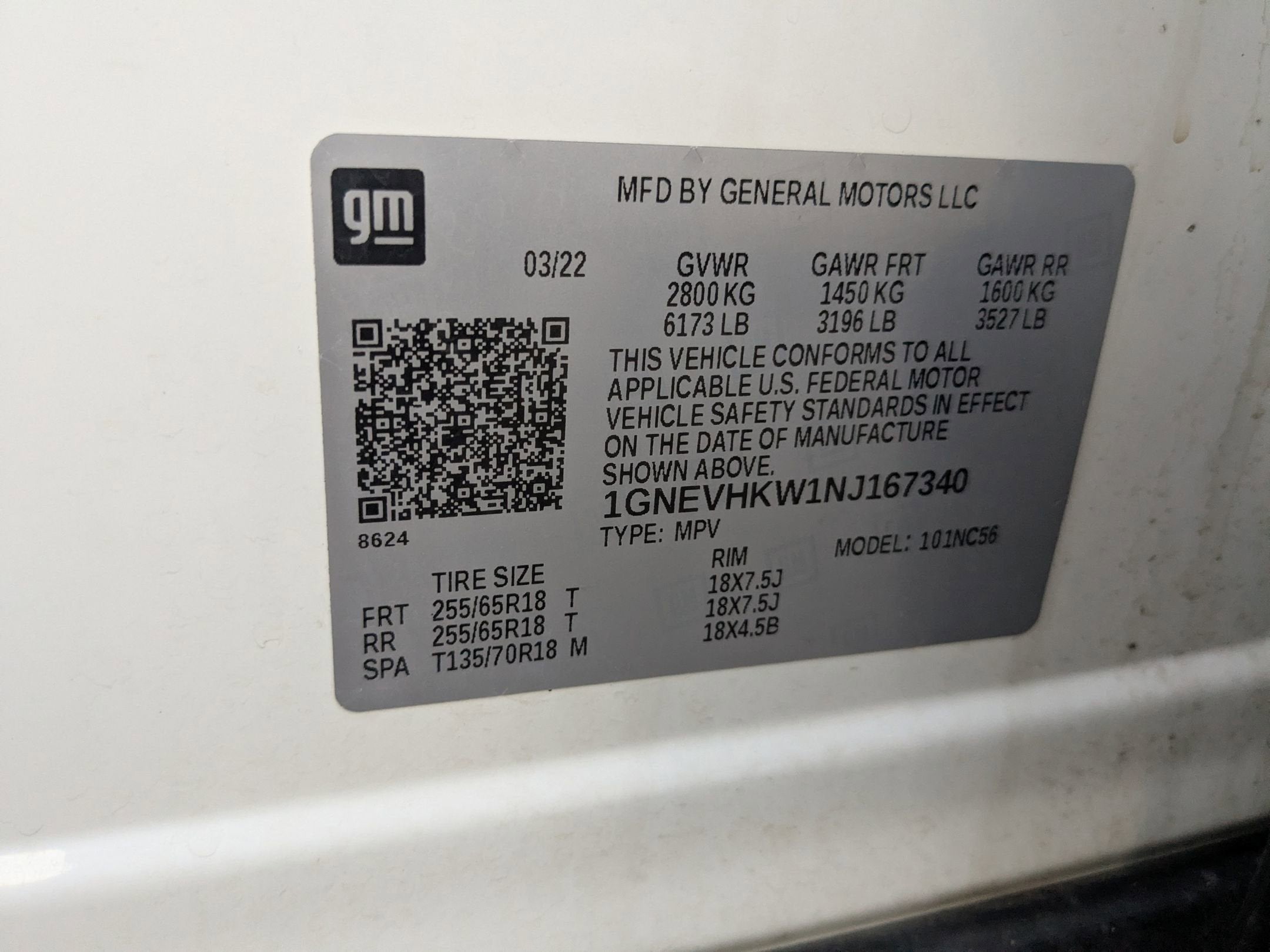 1GNEVHKW1NJ167340