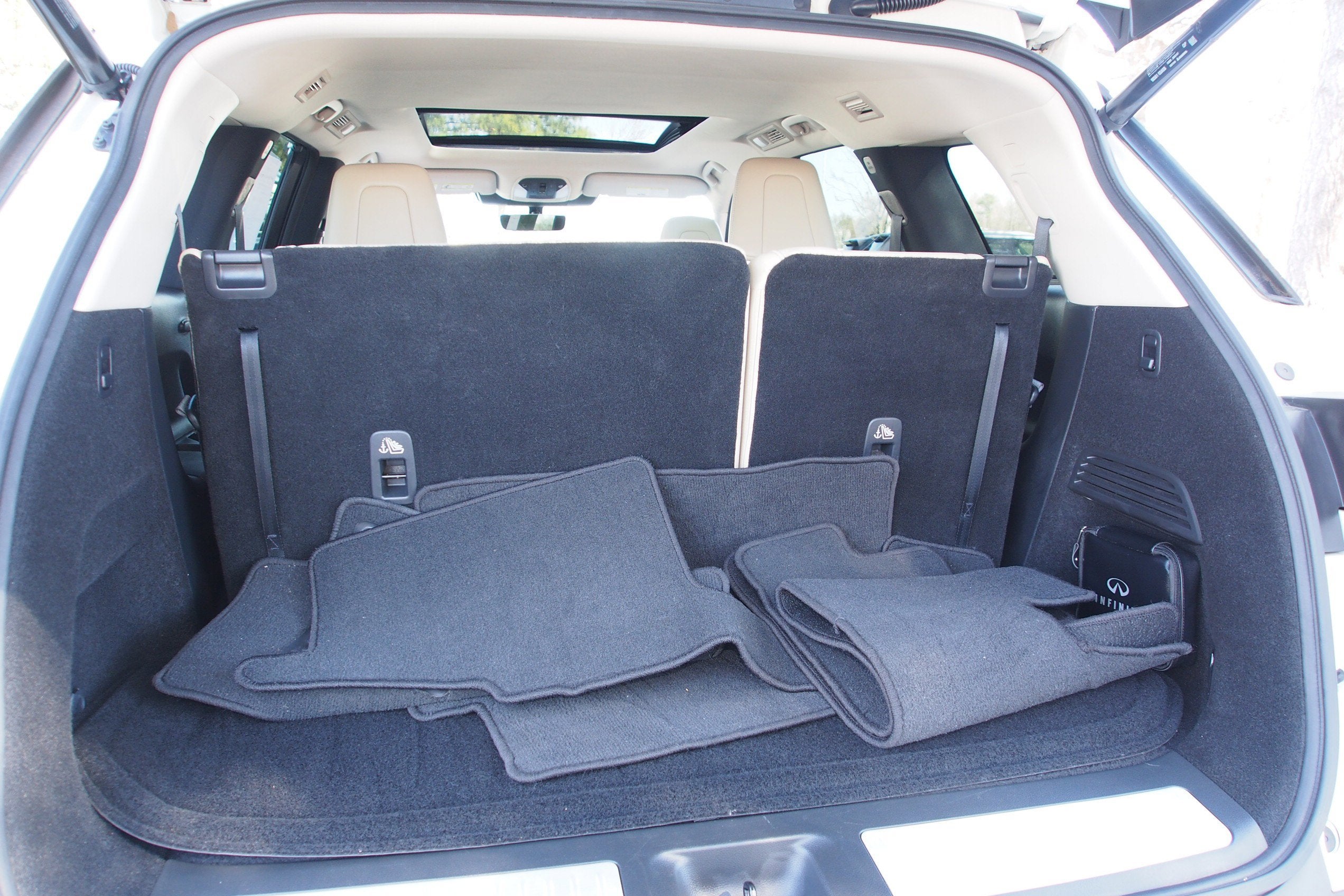 Clean Carfax, One Owner, Cargo Mat (Reversible), Cargo Package, First Aid Kit, Heated front seats, Memory seat, Navigation system: INFINITI InTouch Navigation, Power Liftgate, Power moonroof, Ventilated front seats.