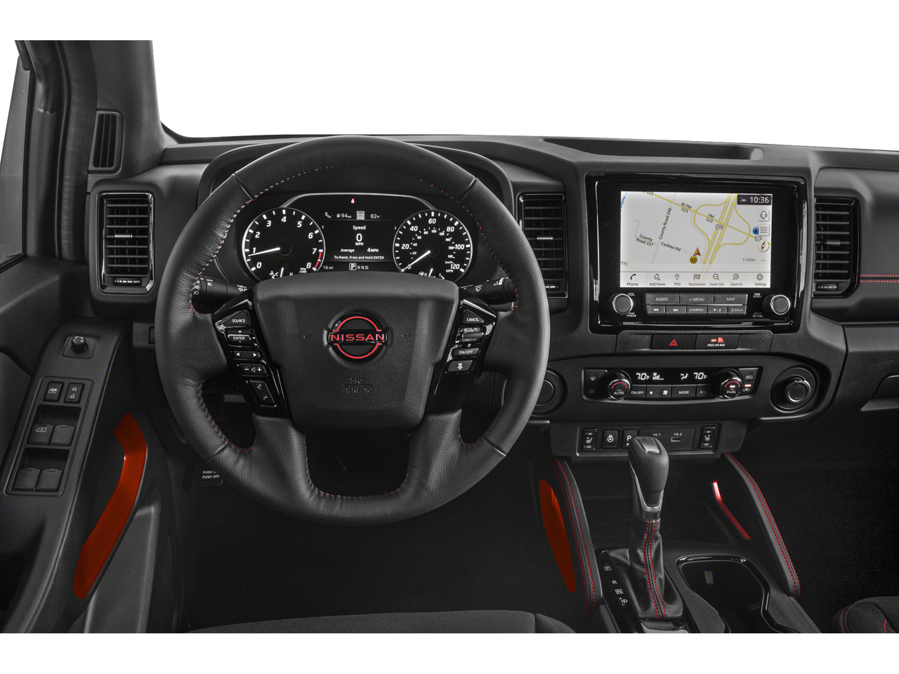 4WD, 120V Power Outlet in Bed, 120V Power Outlet in Rear Center Console, 17" Alloy Wheels, 3.692 Axle Ratio, 4-Wheel Disc Brakes, 6 Speakers, ABS brakes, Air Conditioning, Alloy wheels, AM/FM radio: SiriusXM, Anti-whiplash front head restraints, Automatic temperature control, Bed Under-Rail Lighting, Blind Spot Warning, Brake assist, Bumpers: body-color, Delay-off headlights, Driver door bin, Driver vanity mirror, Dual front impact airbags, Dual front side impact airbags, Electronic Stability Control, Electronic Tailgate Lock, Emergency communication system: NissanConnect Services, Fender Audio Package, Fender Premium Audio System w/10 Speakers, Front anti-roll bar, Front Bucket Seats, Front Center Armrest, Front dual zone A/C, Front fog lights, Front reading lights, Front wheel independent suspension, Fully automatic headlights, Heated Front Seats, Heated Outside Mirrors, Heated Steering Wheel, High Beam Assist (HBA), Illuminated entry, Intelligent Around View Monitor (I-AVM), Intelligent Cruise Control, Knee airbag, Lane Departure Warning System, Leather Shift Knob, Low tire pressure warning, Navigation system: Nissan Navigation with Voice Recognition, Occupant sensing airbag, Off-Road Protection Package, Off-Road Style Step Rails, Overhead airbag, Overhead console, Panic alarm, Partial Under-Seat Storage Delete, Passenger door bin, Passenger vanity mirror, Power door mirrors, Power driver seat, Power steering, Power windows, PRO Convenience Package, PRO Embroidered Premium Cloth Seat Trim, PRO-4X Carpeted Floor Mats, PRO-4X Mud Flaps, Radio data system, Radio: SXM/AM/FM/AUX/USB Audio System w/6 Speakers, Rear anti-roll bar, Rear Automatic Braking (RAB), Rear Cross Traffic Alert (RCTA), Rear seat center armrest, Rear Sonar System, Rear step bumper, Remote Engine Starter, Remote keyless entry, Security system, Speed control, Speed-sensing steering, Split folding rear seat, Spray-In Bedliner, Steering wheel mounted audio controls, Tachometer, Technology Package, Tilt steering wheel, Tow Package: Hitch, Tow Harness, Traction control, Trailer Hitch w/Wiring Harness, Trip computer, USB Charging Cable Kit (DISC), Utili-Track System, Variably intermittent wipers, Voltmeter, Wireless Charging For Personal Devices, 4WD.
