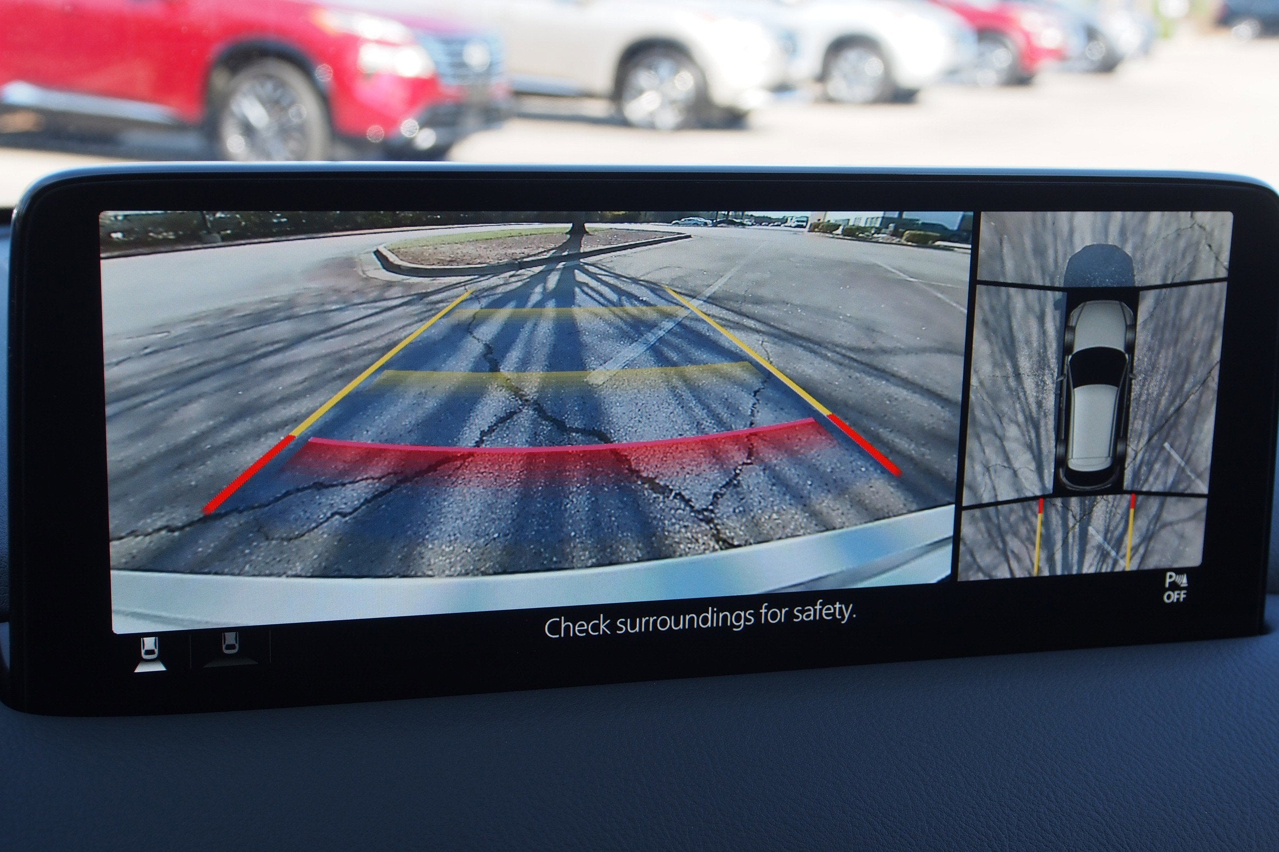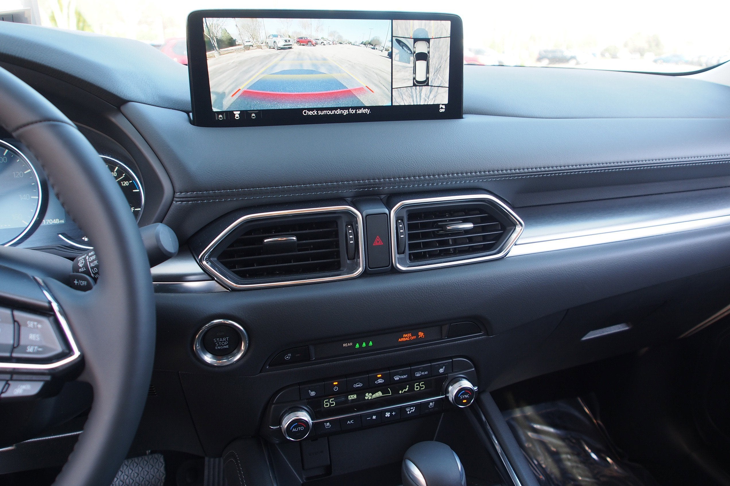 10 Speakers, 4-Wheel Disc Brakes, ABS brakes, Air Conditioning, Alloy wheels, AM/FM radio: SiriusXM, AppLink/Apple CarPlay and Android Auto, Auto High-beam Headlights, Auto-dimming Rear-View mirror, Automatic temperature control, Brake assist, Bumpers: body-color, Cargo Tray, Delay-off headlights, Driver door bin, Driver vanity mirror, Dual front impact airbags, Dual front side impact airbags, E911 Automatic Emergency Notification, Electronic Stability Control, Emergency communication system: MAZDA CONNECT, Four wheel independent suspension, Front & Rear Splash Guards, Front anti-roll bar, Front Bucket Seats, Front Center Armrest w/Storage, Front dual zone A/C, Front reading lights, Fully automatic headlights, Garage door transmitter: HomeLink, Heads-Up Display, Heated door mirrors, Heated front seats, Heated rear seats, Heated steering wheel, Heated/Ventilated Front Bucket Seats, Illuminated entry, Infotainment System Voice Command, Leather Seat Trim, Leather Shift Knob, Leather steering wheel, Low tire pressure warning, Memory seat, Multifunction Commander Control, Occupant sensing airbag, Outside temperature display, Overhead airbag, Overhead console, Pandora, Panic alarm, Passenger door bin, Passenger vanity mirror, Power door mirrors, Power driver seat, Power Liftgate, Power moonroof, Power passenger seat, Power steering, Power windows, Radio Broadcast Data System Program Information, Radio data system, Radio: AM/FM/HD Audio System, Rain sensing wipers, Rear anti-roll bar, Rear Bumper Guard, Rear reading lights, Rear seat center armrest, Rear window defroster, Rear window wiper, Remote keyless entry, Roof Rails & Cross Bars Package, SMS Text Msg Audio Delivery & Reply, Speed control, Speed-sensing steering, Split folding rear seat, Spoiler, Steering wheel mounted audio controls, Tachometer, Telescoping steering wheel, Tilt steering wheel, Traction control, Trip computer, Turn signal indicator mirrors, Variably intermittent wipers, Ventilated front seats, Wheel Locks, Wheels: 19" x 7J Aluminum Alloy.