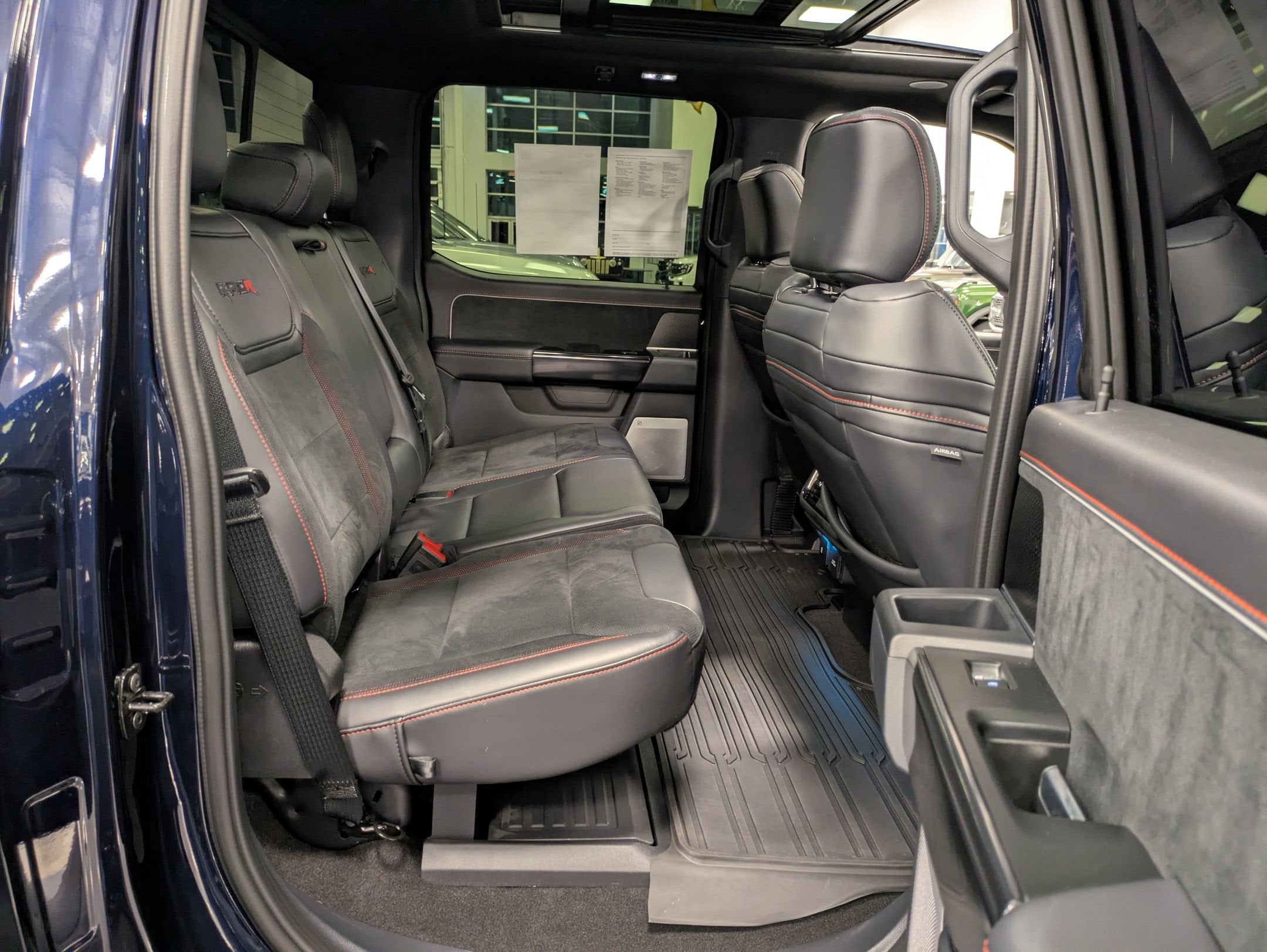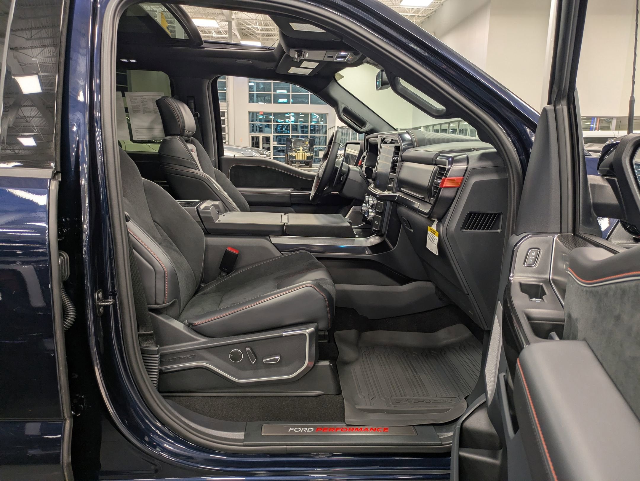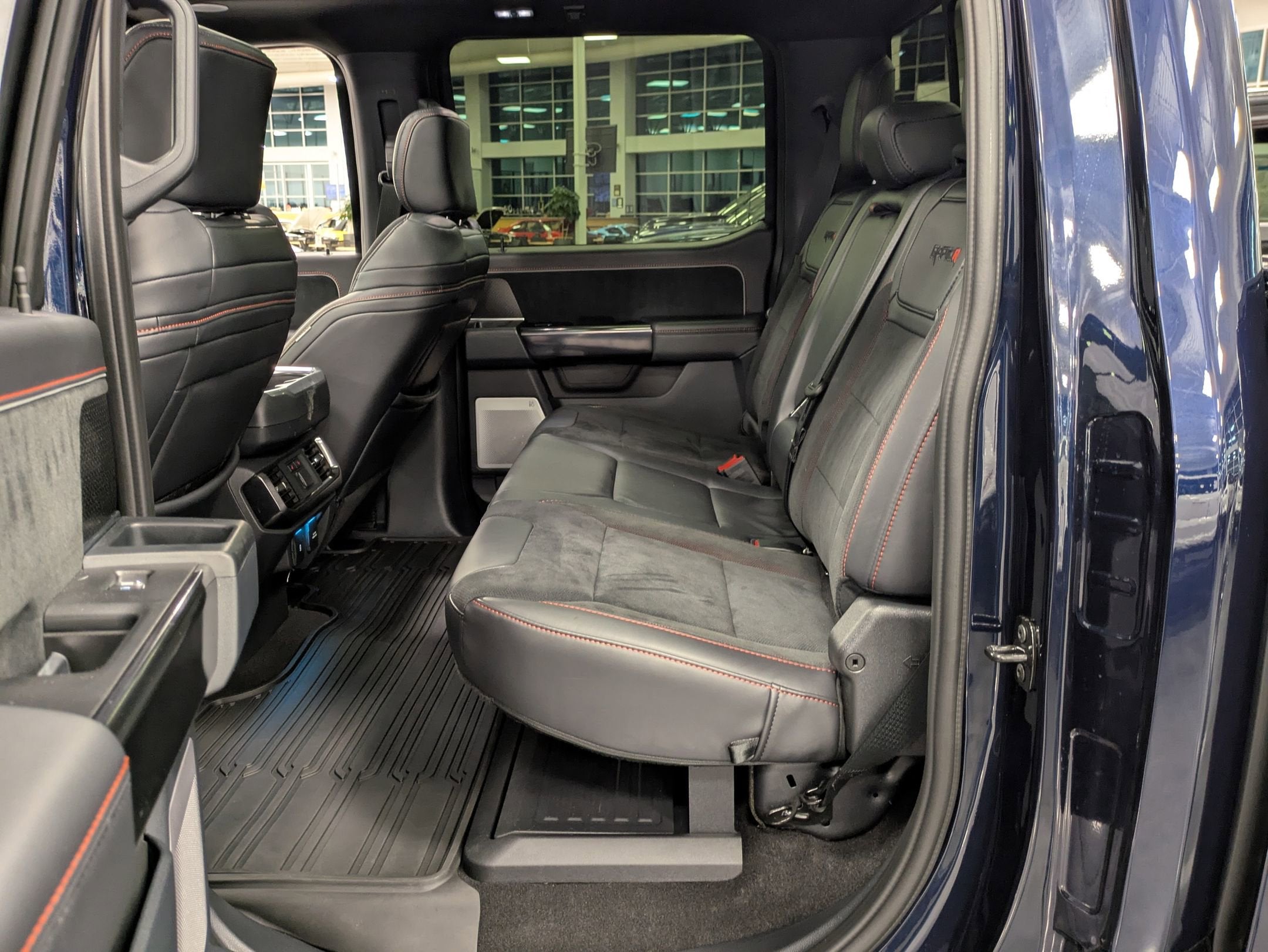 The interior is a high-performance command center featuring Recaro black leather seats, a 12-inch productivity screen, and a Head-Up Display to keep your eyes on the trail. The cabin balances raw power with luxury, offering heated and ventilated front seats, heated second-row seats, and a premium 14-speaker B&O Unleashed sound system. Whether you are utilizing the Mobile Office Package for track-side data or navigating via the 12-inch SYNC 4 touchscreen, the Raptor R provides a refined sanctuary in the most extreme environments.